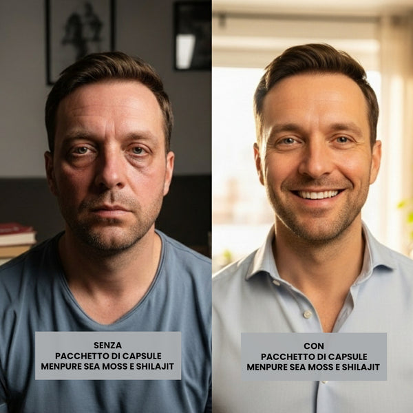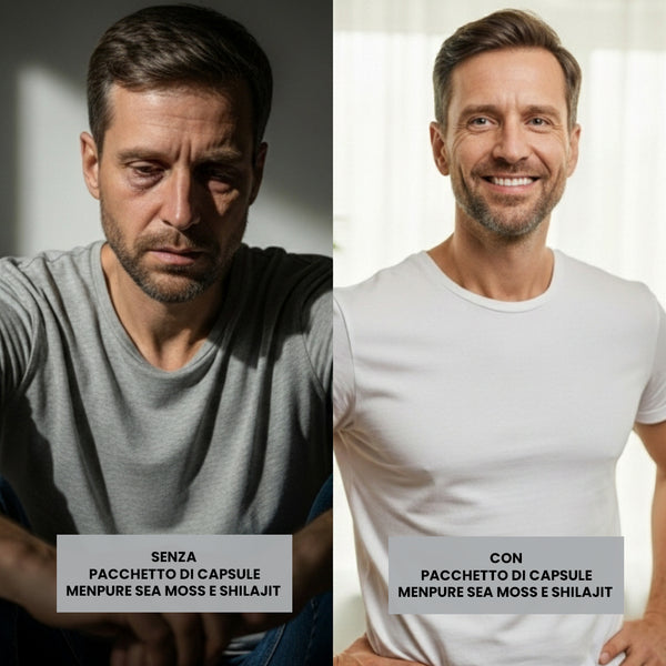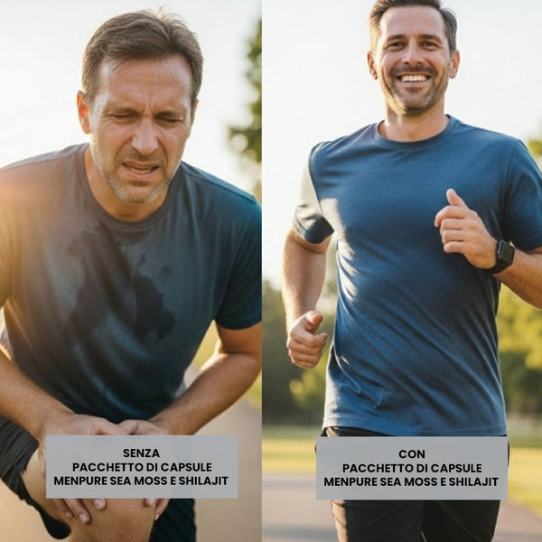 Sapevi che un basso apporto di minerali e un assorbimento inefficace dei nutrienti sono tra le principali cause di stanchezza, recupero lento e perdita di vitalità con l’età? Il pacchetto di capsule Menpure Sea Moss & Shilajit, ricco di minerali oceanici e acido fulvico himalayano, è studiato per aiutare il tuo corpo a funzionare meglio, recuperare più rapidamente e sentirsi più forte ogni giorno.